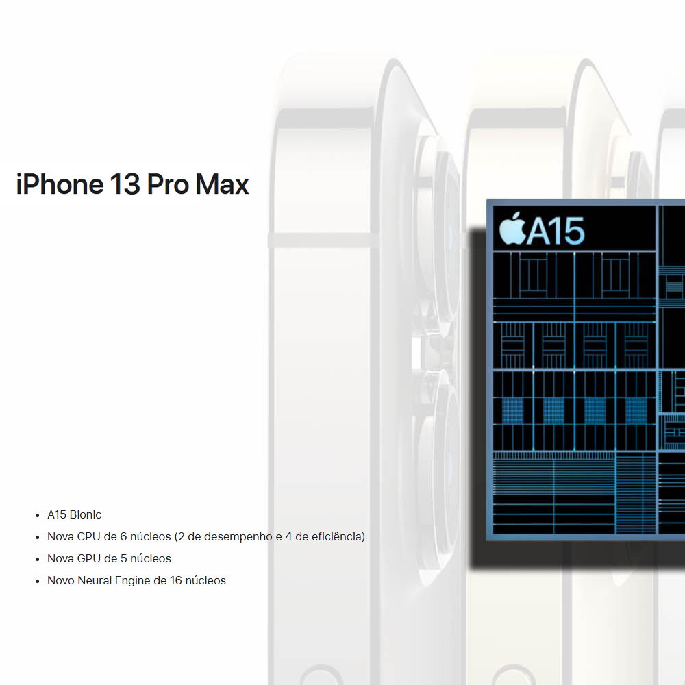 Usa o chip A15 Bionic, com CPU de 6 núcleos e GPU de 5 núcleos. Canaltech+1